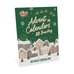 These premium advent calendars are filled with smooth 35% cocoa milk chocolate, made in-house at our UK chocolate factory using high-quality, sustainable cocoa. Behind each window, you’ll find a custom-moulded chocolate tile, stamped with a festive icon or your own 3D branded design — created directly from your artwork.