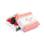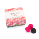 The berry-shaped sweets are nestled in food safe shredded paper and presented in our sustainable Eco Treat Box. Decorated in a summer picnic design, you can add your artwork to the box in full-colour digital design for extra personalisation.