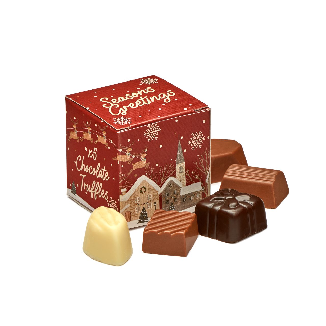 Unwrap the magic of the season with our Eco Maxi Cube, featuring five sumptuous chocolate truffles.